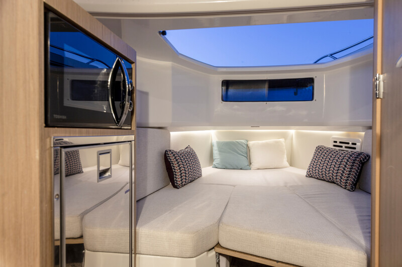 Avec ses deux vastes cockpits et son immense porte de coupée avec échelle de bain intégrée qui permet un accès privilégié à la mer, le Cap Camarat 10.5 CC est une invitation à la détente.